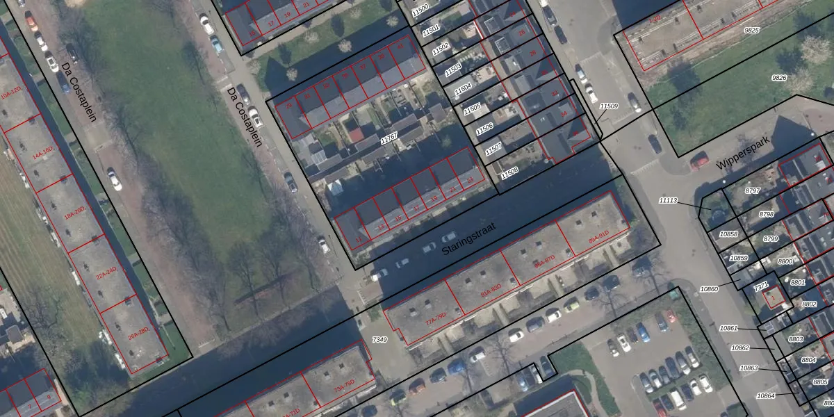Het perceel waarop Staringstraat 17 staat heeft een oppervlakte van 1785 m². Dit is een zeer groot perceel. De perceeloppervlakte wordt geregistreerd door het Kadaster. Gedetailleerde informatie over de maten van dit perceel kunt u vinden in het rapport Kadastrale kaart met maatvoering van Staringstraat 17.
