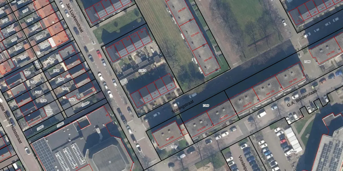 Het perceel waarop het adres ligt is MSS00-D-11473. De afkorting 'MSS00' staat voor kadastrale gemeente Maassluis. De oppervlakte van het perceel is 1395 m². Dat is groter dan gemiddeld in Maassluis, waar de gemiddelde perceeloppervlakte op 949,6 m² ligt. De grootste perceeloppervlakte in de kadastrale gemeente is 34,0 ha. De kleinste oppervlakte bedraagt 0 m². Er zijn 10 adressen aanwezig op het perceel. De huidige grenzen van het perceel zijn digitaal in de Basisregistratie Kadaster (BRK) geregistreerd op 12-08-2020.