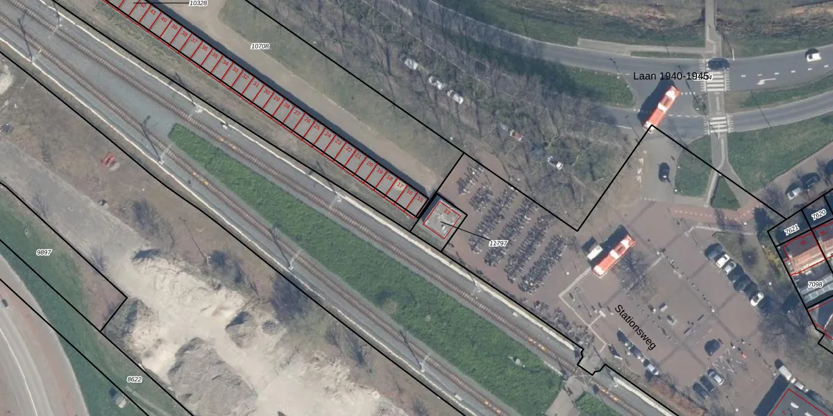 Het perceel waarop Stationsweg 15 staat heeft een oppervlakte van 1045 m². Dit is een zeer groot perceel. De perceeloppervlakte wordt geregistreerd door het Kadaster. Gedetailleerde informatie over de maten van dit perceel kunt u vinden in het rapport Kadastrale kaart met maatvoering van Stationsweg 15.