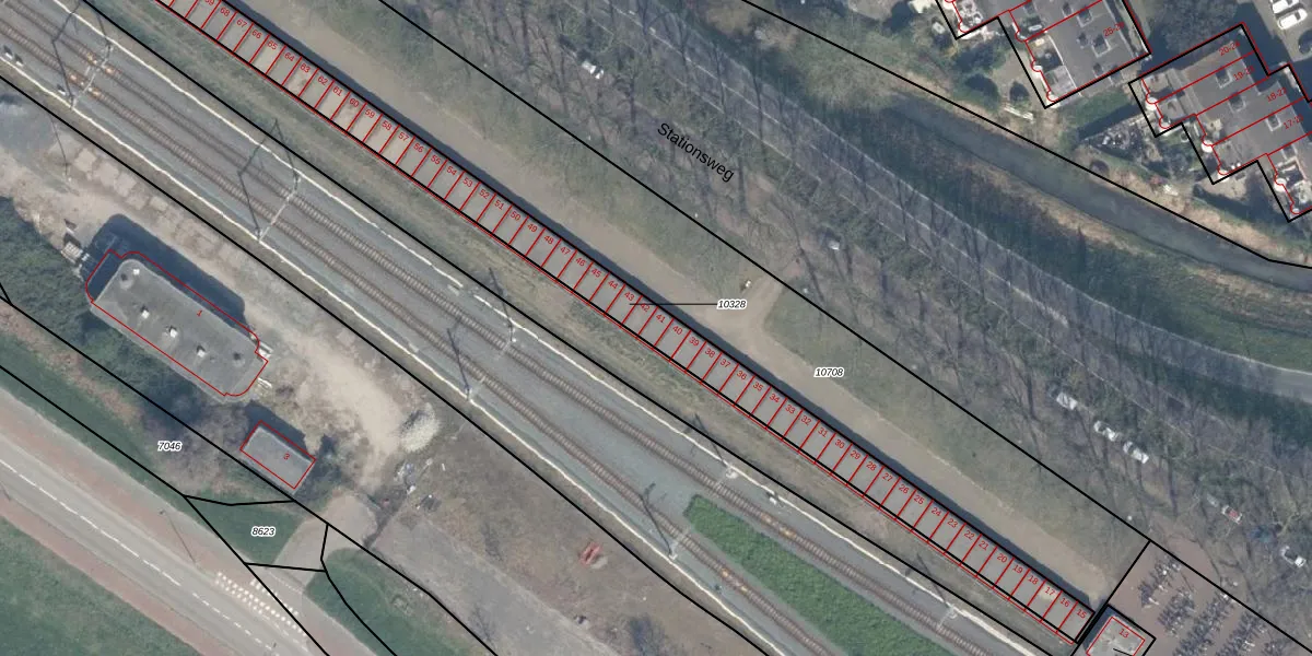 Het perceel waarop Stationsweg 41 staat heeft een oppervlakte van 1045 m². Dit is een zeer groot perceel. De perceeloppervlakte wordt geregistreerd door het Kadaster. Gedetailleerde informatie over de maten van dit perceel kunt u vinden in het rapport Kadastrale kaart met maatvoering van Stationsweg 41.