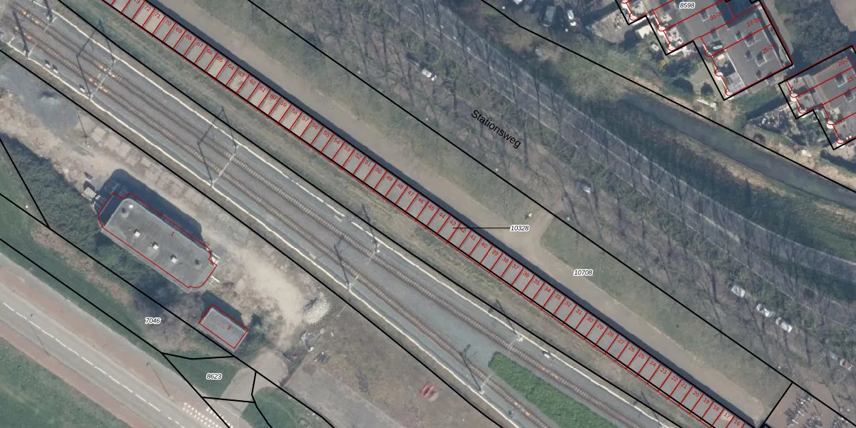 Het perceel waarop Stationsweg 45 staat heeft een oppervlakte van 1045 m². Dit is een zeer groot perceel. De perceeloppervlakte wordt geregistreerd door het Kadaster. Gedetailleerde informatie over de maten van dit perceel kunt u vinden in het rapport Kadastrale kaart met maatvoering van Stationsweg 45.