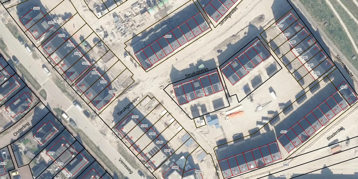 Het perceel waarop Struikgewas 2 staat heeft een oppervlakte van 622 m². Dit is een groot perceel. De perceeloppervlakte wordt geregistreerd door het Kadaster. Gedetailleerde informatie over de maten van dit perceel kunt u vinden in het rapport Kadastrale kaart met maatvoering van Struikgewas 2.