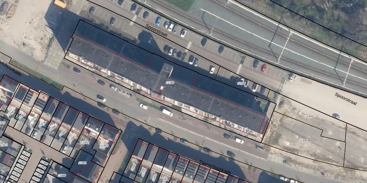 Het perceel waarop Taanschuurkade 254 staat heeft een oppervlakte van 2702 m². Dit is een zeer groot perceel. De perceeloppervlakte wordt geregistreerd door het Kadaster. Gedetailleerde informatie over de maten van dit perceel kunt u vinden in het rapport Kadastrale kaart met maatvoering van Taanschuurkade 254.