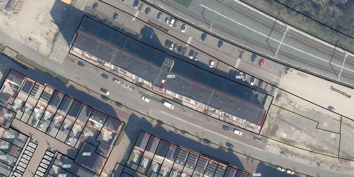 Het perceel waarop Taanschuurkade 302 staat heeft een oppervlakte van 2702 m². Dit is een zeer groot perceel. De perceeloppervlakte wordt geregistreerd door het Kadaster. Gedetailleerde informatie over de maten van dit perceel kunt u vinden in het rapport Kadastrale kaart met maatvoering van Taanschuurkade 302.