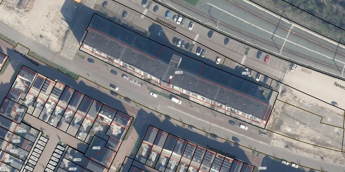 Het perceel waarop Taanschuurkade 322 staat heeft een oppervlakte van 2702 m². Dit is een zeer groot perceel. De perceeloppervlakte wordt geregistreerd door het Kadaster. Gedetailleerde informatie over de maten van dit perceel kunt u vinden in het rapport Kadastrale kaart met maatvoering van Taanschuurkade 322.