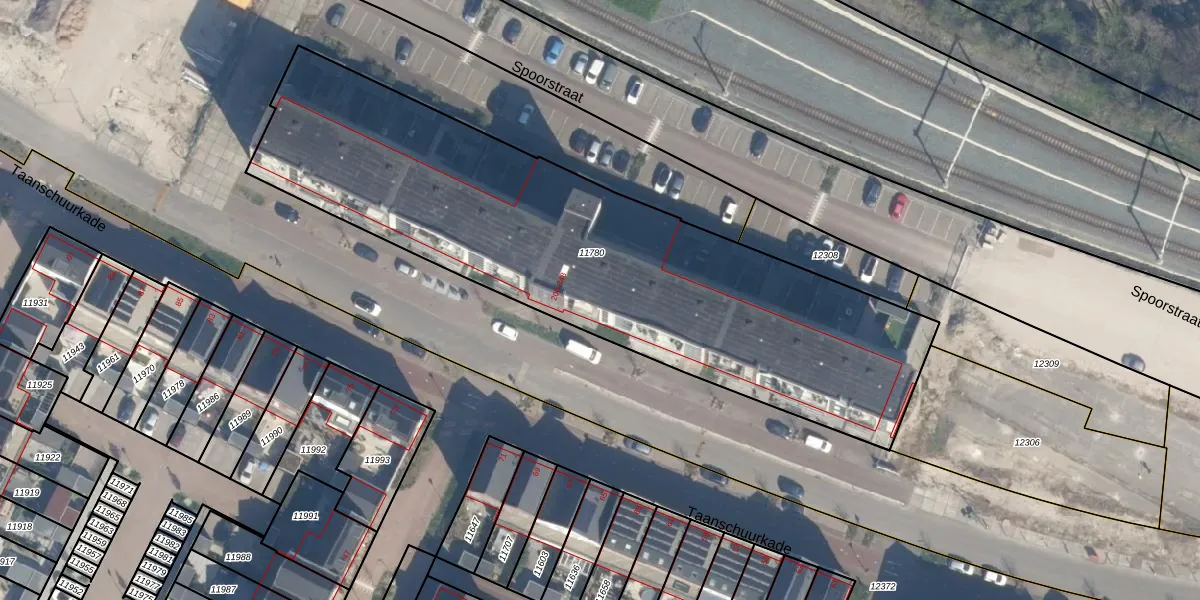 Taanschuurkade 332 is gelegen op kadastraal perceel MSS00D11780. Deze kadastrale aanduiding is uniek en wordt gebruikt door het Kadaster om eigendomsrechten en andere zakelijke rechten vast te leggen. Het perceel maakt onderdeel uit van de kadastrale gemeente Maassluis.
