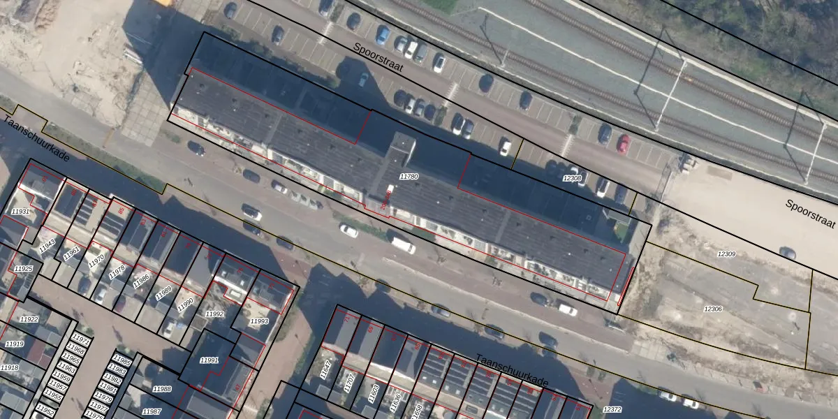 Taanschuurkade 334 is gelegen op kadastraal perceel MSS00D11780. Deze kadastrale aanduiding is uniek en wordt gebruikt door het Kadaster om eigendomsrechten en andere zakelijke rechten vast te leggen. Het perceel maakt onderdeel uit van de kadastrale gemeente Maassluis.