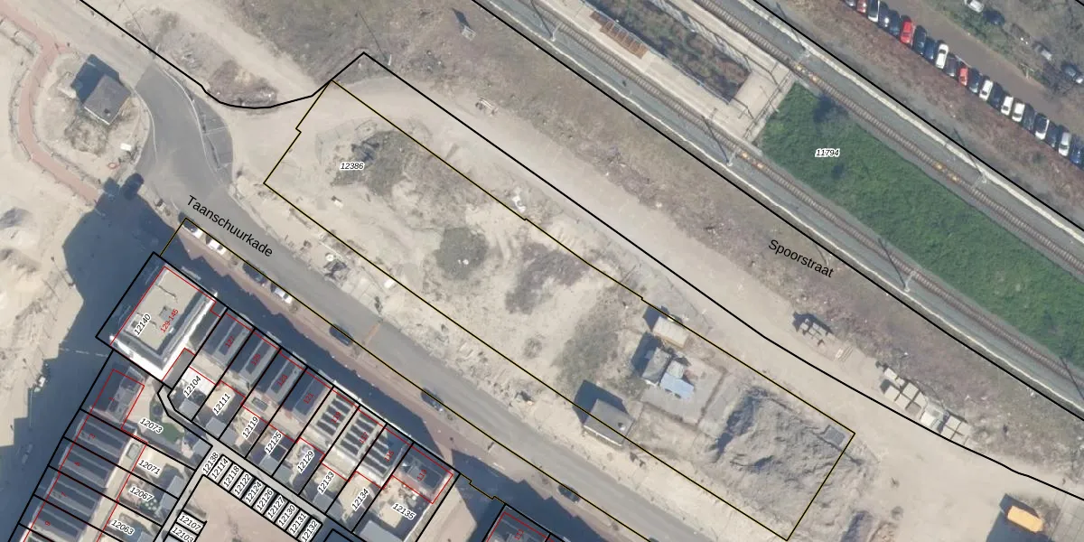 Het perceel waarop Taanschuurkade 388 staat heeft een oppervlakte van 2696 m². Dit is een zeer groot perceel. De perceeloppervlakte wordt geregistreerd door het Kadaster. Gedetailleerde informatie over de maten van dit perceel kunt u vinden in het rapport Kadastrale kaart met maatvoering van Taanschuurkade 388.