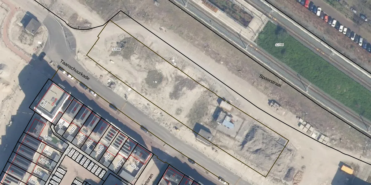 Het perceel waarop Taanschuurkade 444 staat heeft een oppervlakte van 2696 m². Dit is een zeer groot perceel. De perceeloppervlakte wordt geregistreerd door het Kadaster. Gedetailleerde informatie over de maten van dit perceel kunt u vinden in het rapport Kadastrale kaart met maatvoering van Taanschuurkade 444.