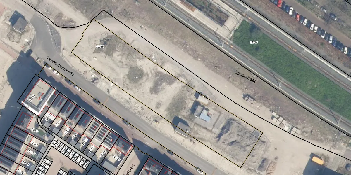 Het perceel waarop Taanschuurkade 450 staat heeft een oppervlakte van 2696 m². Dit is een zeer groot perceel. De perceeloppervlakte wordt geregistreerd door het Kadaster. Gedetailleerde informatie over de maten van dit perceel kunt u vinden in het rapport Kadastrale kaart met maatvoering van Taanschuurkade 450.