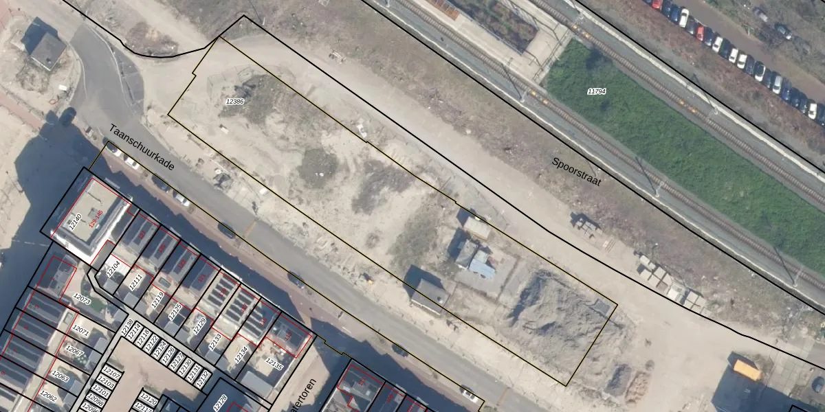 Het perceel waarop Taanschuurkade 476 staat heeft een oppervlakte van 2696 m². Dit is een zeer groot perceel. De perceeloppervlakte wordt geregistreerd door het Kadaster. Gedetailleerde informatie over de maten van dit perceel kunt u vinden in het rapport Kadastrale kaart met maatvoering van Taanschuurkade 476.