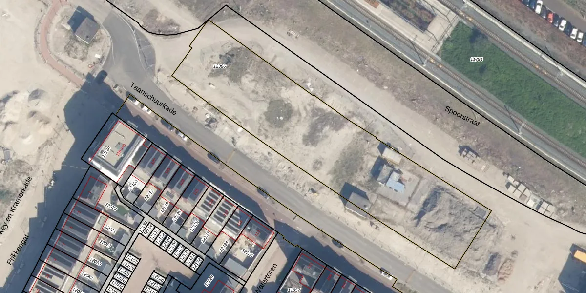 Het perceel waarop Taanschuurkade 482 staat heeft een oppervlakte van 2696 m². Dit is een zeer groot perceel. De perceeloppervlakte wordt geregistreerd door het Kadaster. Gedetailleerde informatie over de maten van dit perceel kunt u vinden in het rapport Kadastrale kaart met maatvoering van Taanschuurkade 482.