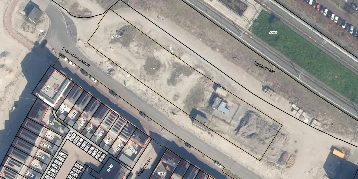 Het perceel waarop Taanschuurkade 516 staat heeft een oppervlakte van 2696 m². Dit is een zeer groot perceel. De perceeloppervlakte wordt geregistreerd door het Kadaster. Gedetailleerde informatie over de maten van dit perceel kunt u vinden in het rapport Kadastrale kaart met maatvoering van Taanschuurkade 516.