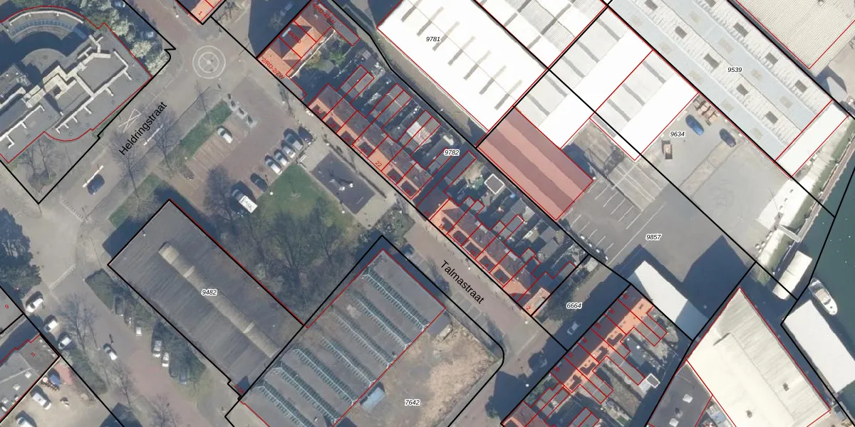 Talmastraat 16 is gelegen op kadastraal perceel MSS00D9782. Deze kadastrale aanduiding is uniek en wordt gebruikt door het Kadaster om eigendomsrechten en andere zakelijke rechten vast te leggen. Het perceel maakt onderdeel uit van de kadastrale gemeente Maassluis.