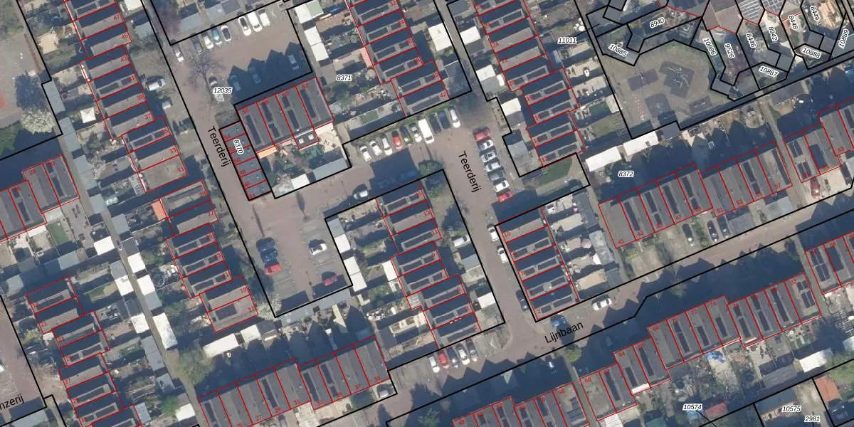 Teerderij 13 is gelegen op kadastraal perceel MSS00D10805. Deze kadastrale aanduiding is uniek en wordt gebruikt door het Kadaster om eigendomsrechten en andere zakelijke rechten vast te leggen. Het perceel maakt onderdeel uit van de kadastrale gemeente Maassluis.