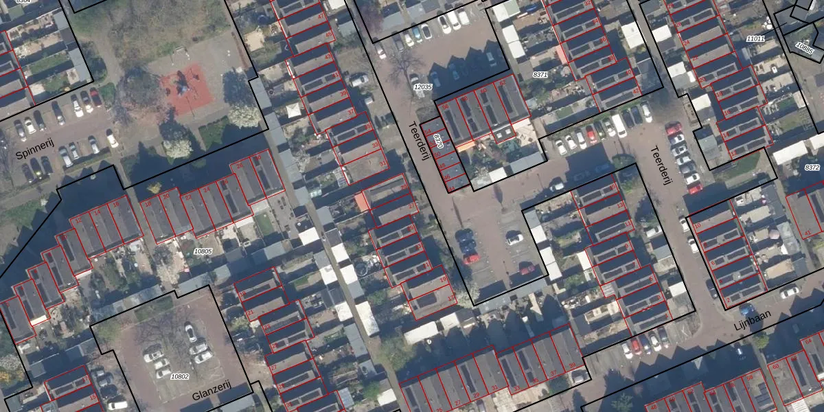Het perceel waarop Teerderij 27 staat heeft een oppervlakte van 9969 m². Dit is een zeer groot perceel. De perceeloppervlakte wordt geregistreerd door het Kadaster. Gedetailleerde informatie over de maten van dit perceel kunt u vinden in het rapport Kadastrale kaart met maatvoering van Teerderij 27.