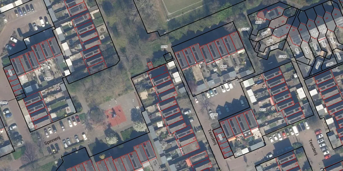Het perceel waarop Teerderij 47 staat heeft een oppervlakte van 9969 m². Dit is een zeer groot perceel. De perceeloppervlakte wordt geregistreerd door het Kadaster. Gedetailleerde informatie over de maten van dit perceel kunt u vinden in het rapport Kadastrale kaart met maatvoering van Teerderij 47.