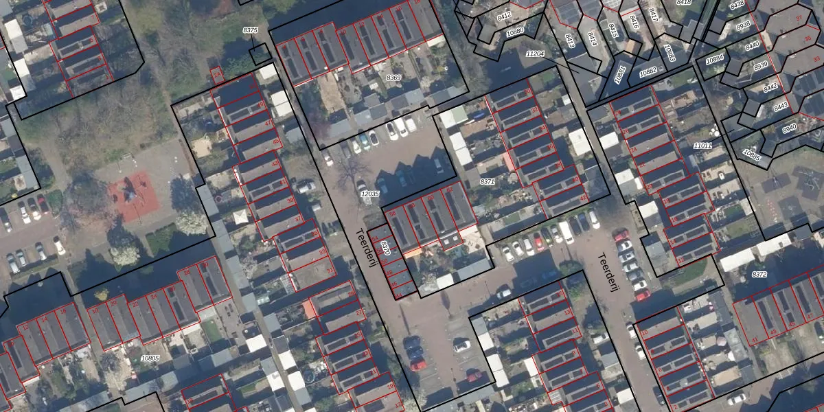 Het perceel waarop Teerderij 58 staat heeft een oppervlakte van 1593 m². Dit is een zeer groot perceel. De perceeloppervlakte wordt geregistreerd door het Kadaster. Gedetailleerde informatie over de maten van dit perceel kunt u vinden in het rapport Kadastrale kaart met maatvoering van Teerderij 58.