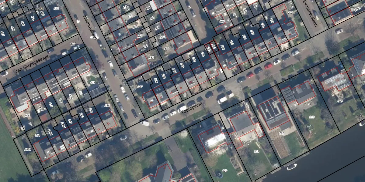 Gebruik de zoekbalk of klik op een perceel voor informatie over de adressen binnen dit perceel.
