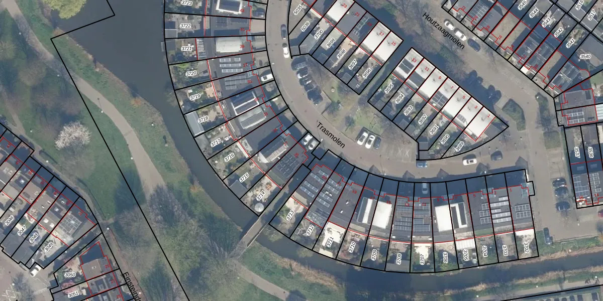 Het perceel waarop Trasmolen 25 staat heeft een oppervlakte van 233 m². Dit is een middelgroot perceel. De perceeloppervlakte wordt geregistreerd door het Kadaster. Gedetailleerde informatie over de maten van dit perceel kunt u vinden in het rapport Kadastrale kaart met maatvoering van Trasmolen 25.