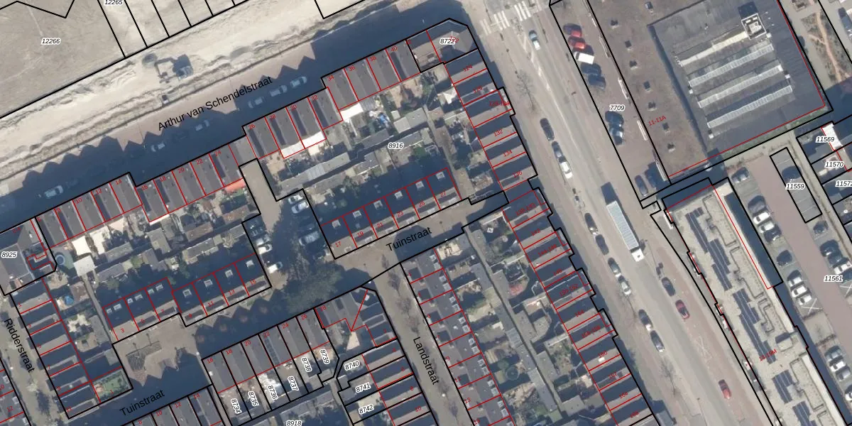 Het perceel waarop Tuinstraat 25 staat heeft een oppervlakte van 6640 m². Dit is een zeer groot perceel. De perceeloppervlakte wordt geregistreerd door het Kadaster. Gedetailleerde informatie over de maten van dit perceel kunt u vinden in het rapport Kadastrale kaart met maatvoering van Tuinstraat 25.