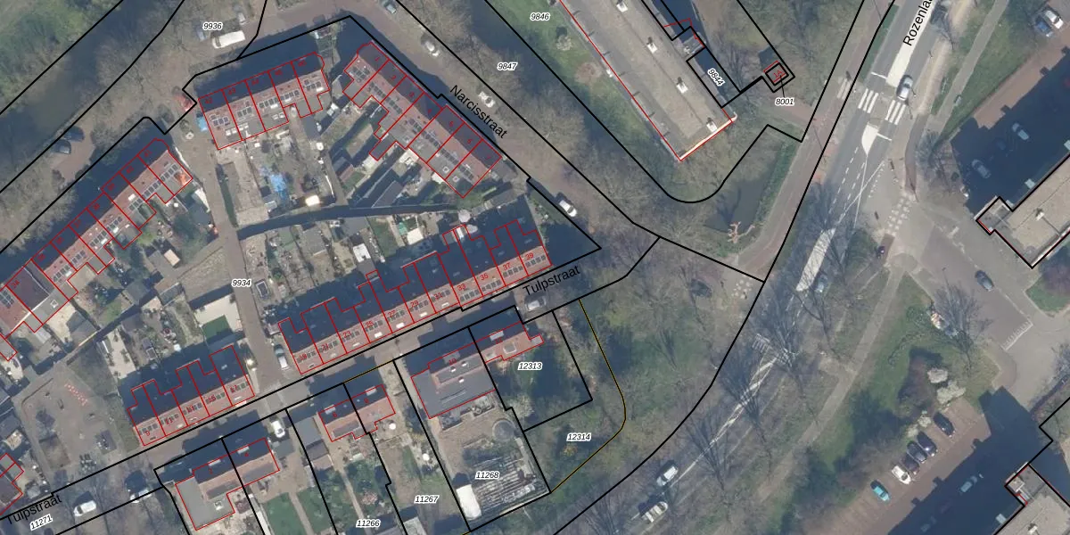 Het perceel waarop Tulpstraat 39 staat heeft een oppervlakte van 6170 m². Dit is een zeer groot perceel. De perceeloppervlakte wordt geregistreerd door het Kadaster. Gedetailleerde informatie over de maten van dit perceel kunt u vinden in het rapport Kadastrale kaart met maatvoering van Tulpstraat 39.
