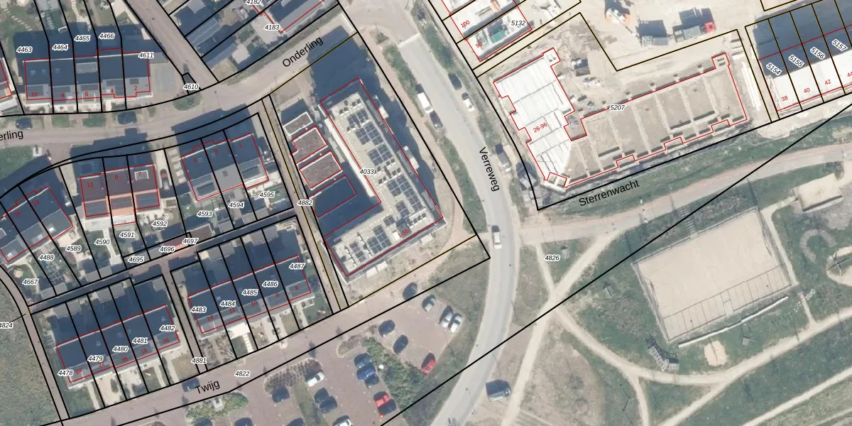 Het perceel waarop Twijg 31 staat heeft een oppervlakte van 1625 m². Dit is een zeer groot perceel. De perceeloppervlakte wordt geregistreerd door het Kadaster. Gedetailleerde informatie over de maten van dit perceel kunt u vinden in het rapport Kadastrale kaart met maatvoering van Twijg 31.