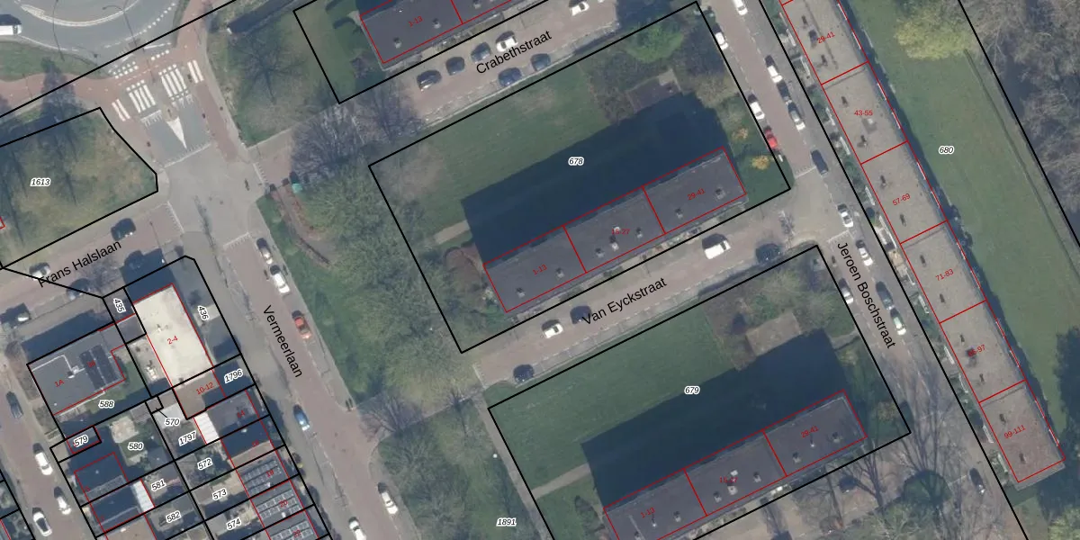 Van Eyckstraat 13 is gelegen op kadastraal perceel MSS00B678. Deze kadastrale aanduiding is uniek en wordt gebruikt door het Kadaster om eigendomsrechten en andere zakelijke rechten vast te leggen. Het perceel maakt onderdeel uit van de kadastrale gemeente Maassluis.