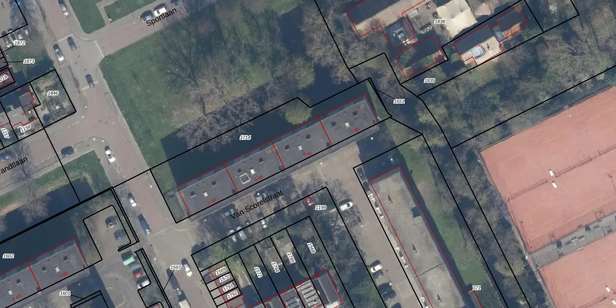 Het perceel waarop Van Scorelstraat 6-C staat heeft een oppervlakte van 1381 m². Dit is een zeer groot perceel. De perceeloppervlakte wordt geregistreerd door het Kadaster. Gedetailleerde informatie over de maten van dit perceel kunt u vinden in het rapport Kadastrale kaart met maatvoering van Van Scorelstraat 6-C.