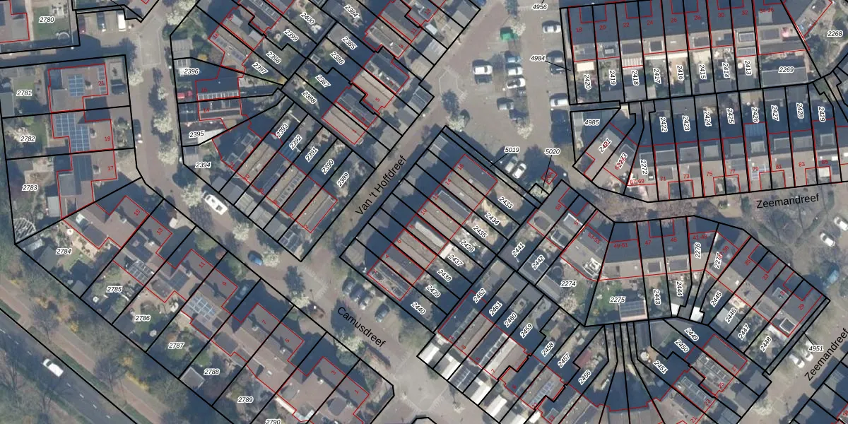 Gebruik de zoekbalk of klik op een perceel voor informatie over de adressen binnen dit perceel.