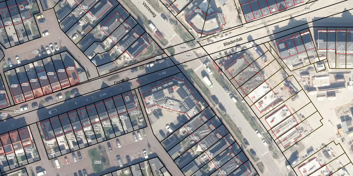 Het perceel waarop Verreweg 75 staat heeft een oppervlakte van 900 m². Dit is een groot perceel. De perceeloppervlakte wordt geregistreerd door het Kadaster. Gedetailleerde informatie over de maten van dit perceel kunt u vinden in het rapport Kadastrale kaart met maatvoering van Verreweg 75.