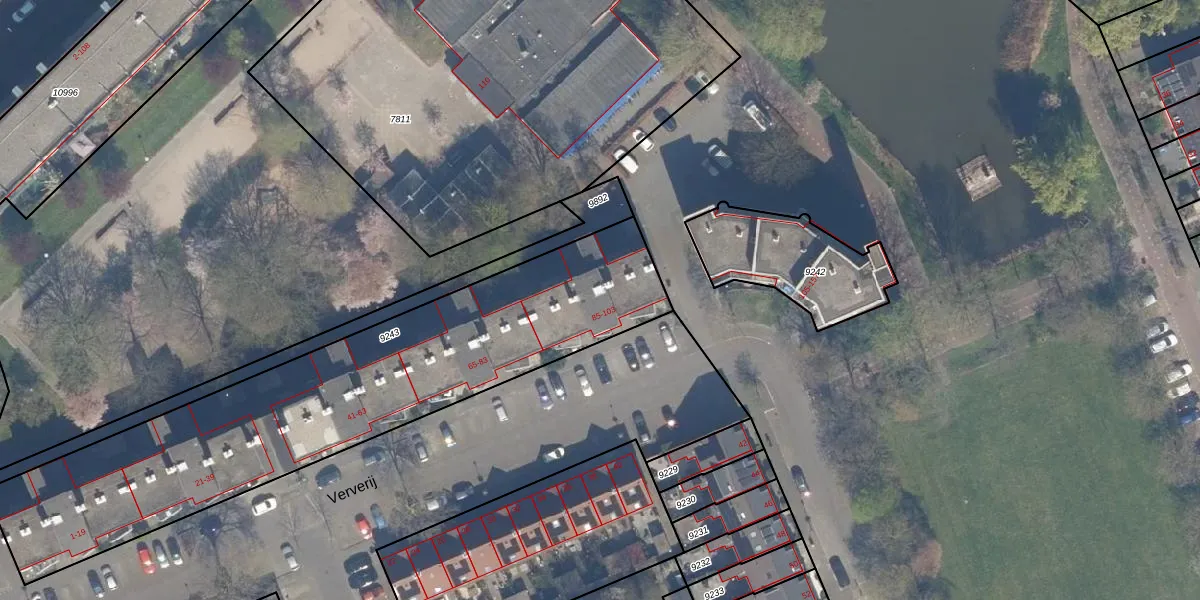 Het perceel waarop Ververij 95 staat heeft een oppervlakte van 2027 m². Dit is een zeer groot perceel. De perceeloppervlakte wordt geregistreerd door het Kadaster. Gedetailleerde informatie over de maten van dit perceel kunt u vinden in het rapport Kadastrale kaart met maatvoering van Ververij 95.