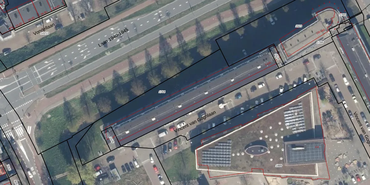 Het perceel waarop Vincent van Goghlaan 13 staat heeft een oppervlakte van 2102 m². Dit is een zeer groot perceel. De perceeloppervlakte wordt geregistreerd door het Kadaster. Gedetailleerde informatie over de maten van dit perceel kunt u vinden in het rapport Kadastrale kaart met maatvoering van Vincent van Goghlaan 13.