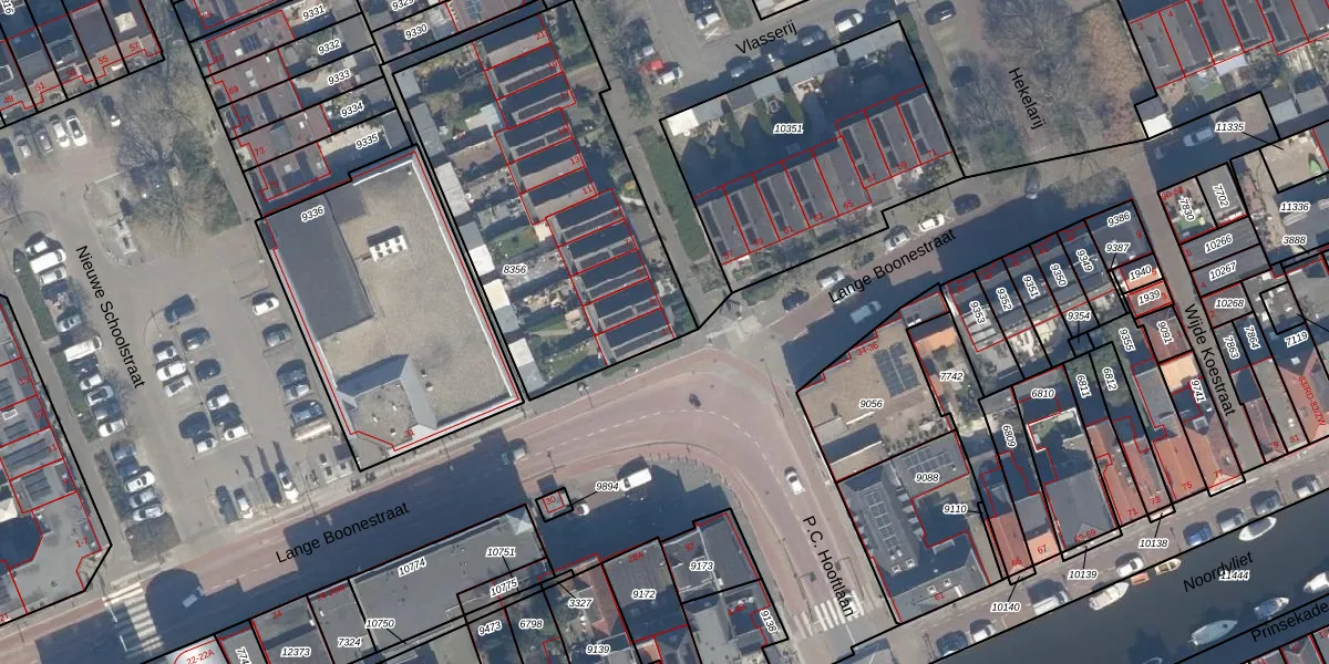 Het perceel waarop het adres ligt is MSS00-D-8356. De afkorting 'MSS00' staat voor kadastrale gemeente Maassluis. Het perceel is met 1499 m² relatief groot. Het gemiddelde ligt in de kadastrale gemeente Maassluis op 946,84 m². Het kleinste perceel in de kadastrale gemeente is 0 m² groot. De grootste perceeloppervlakte is 34,0 ha. Op het perceel zijn 11 adressen aanwezig. De huidige grenzen van het perceel zijn digitaal in de Basisregistratie Kadaster (BRK) geregistreerd op 15-12-2009.