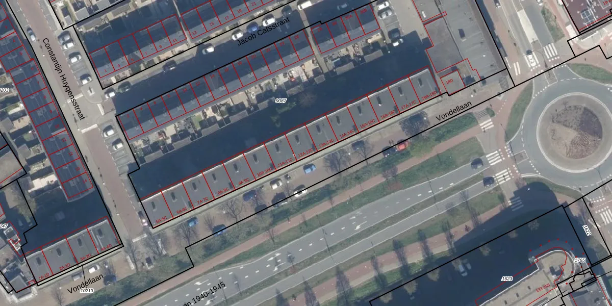 Het perceel waarop Vondellaan 12-C staat heeft een oppervlakte van 4774 m². Dit is een zeer groot perceel. De perceeloppervlakte wordt geregistreerd door het Kadaster. Gedetailleerde informatie over de maten van dit perceel kunt u vinden in het rapport Kadastrale kaart met maatvoering van Vondellaan 12-C.