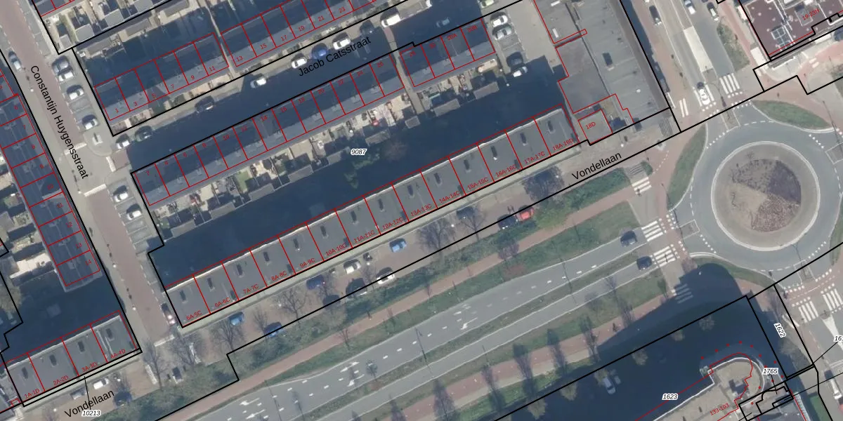Het perceel waarop Vondellaan 13-B staat heeft een oppervlakte van 4774 m². Dit is een zeer groot perceel. De perceeloppervlakte wordt geregistreerd door het Kadaster. Gedetailleerde informatie over de maten van dit perceel kunt u vinden in het rapport Kadastrale kaart met maatvoering van Vondellaan 13-B.