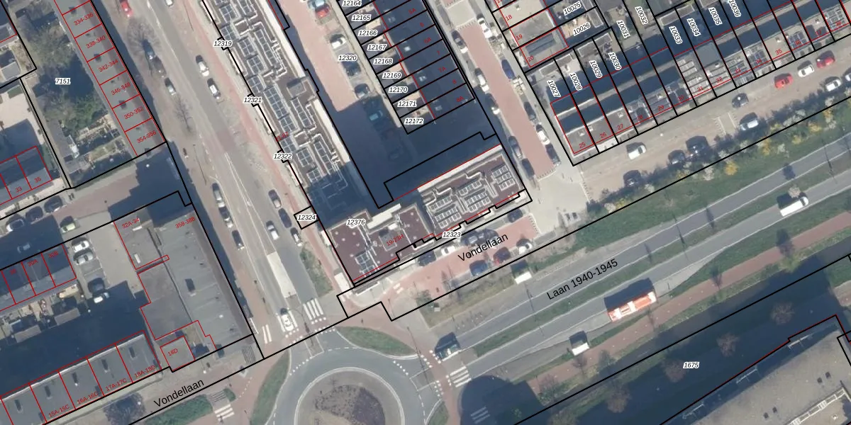 Het perceel waarop Vondellaan 21-M staat heeft een oppervlakte van 1776 m². Dit is een zeer groot perceel. De perceeloppervlakte wordt geregistreerd door het Kadaster. Gedetailleerde informatie over de maten van dit perceel kunt u vinden in het rapport Kadastrale kaart met maatvoering van Vondellaan 21-M.