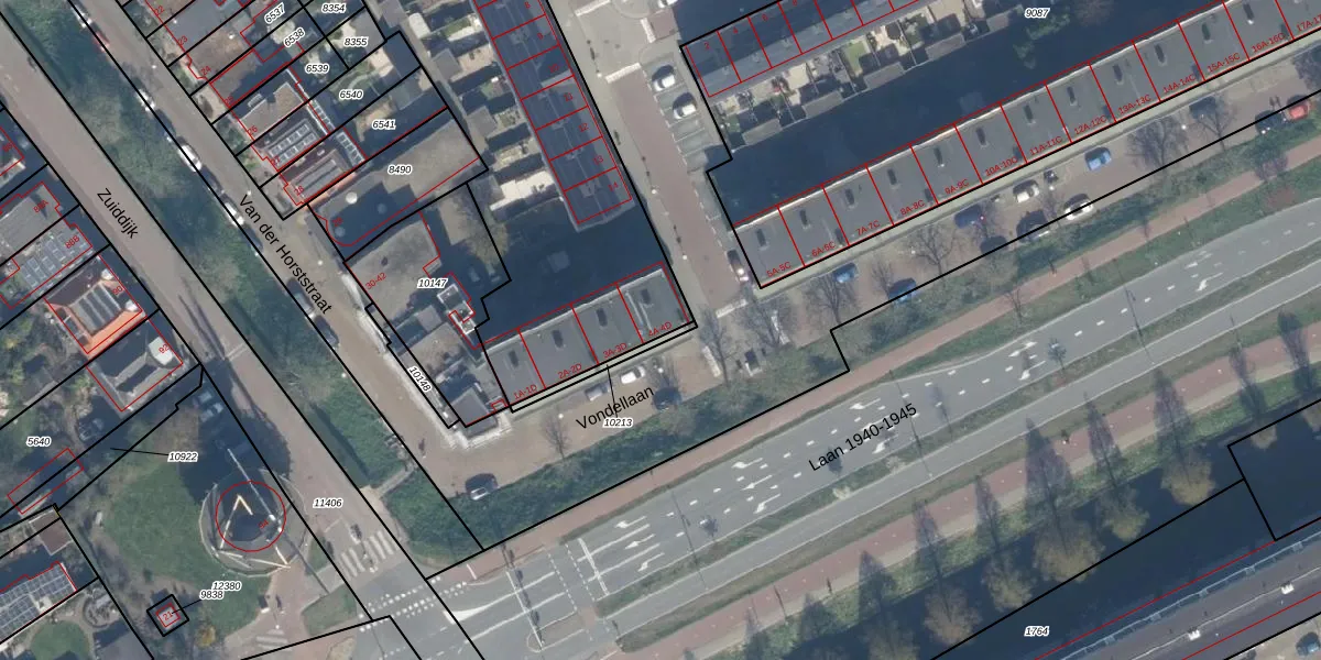 Het perceel waarop Vondellaan 4-B staat heeft een oppervlakte van 2168 m². Dit is een zeer groot perceel. De perceeloppervlakte wordt geregistreerd door het Kadaster. Gedetailleerde informatie over de maten van dit perceel kunt u vinden in het rapport Kadastrale kaart met maatvoering van Vondellaan 4-B.