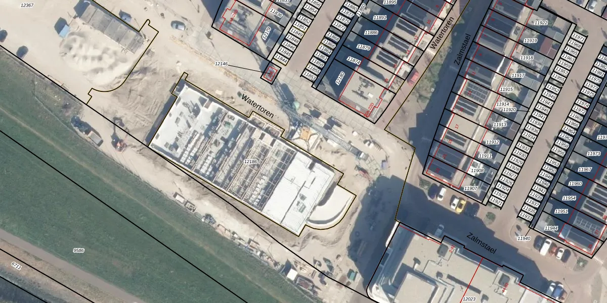 Het perceel waarop Watertoren 45 staat heeft een oppervlakte van 1665 m². Dit is een zeer groot perceel. De perceeloppervlakte wordt geregistreerd door het Kadaster. Gedetailleerde informatie over de maten van dit perceel kunt u vinden in het rapport Kadastrale kaart met maatvoering van Watertoren 45.