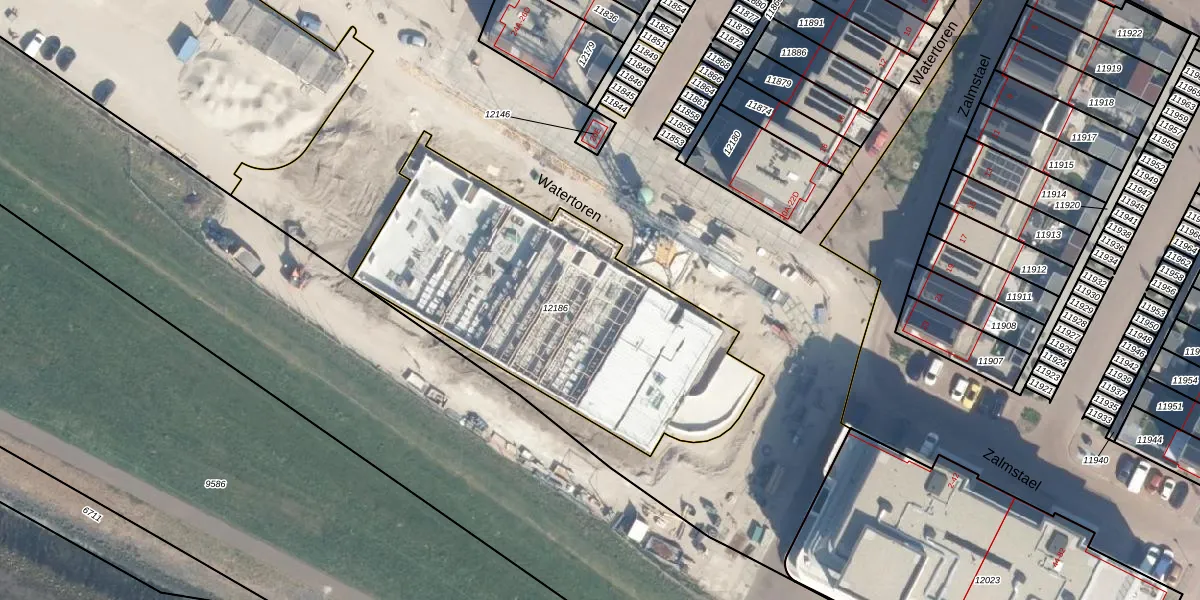 Het perceel waarop Watertoren 65 staat heeft een oppervlakte van 1665 m². Dit is een zeer groot perceel. De perceeloppervlakte wordt geregistreerd door het Kadaster. Gedetailleerde informatie over de maten van dit perceel kunt u vinden in het rapport Kadastrale kaart met maatvoering van Watertoren 65.