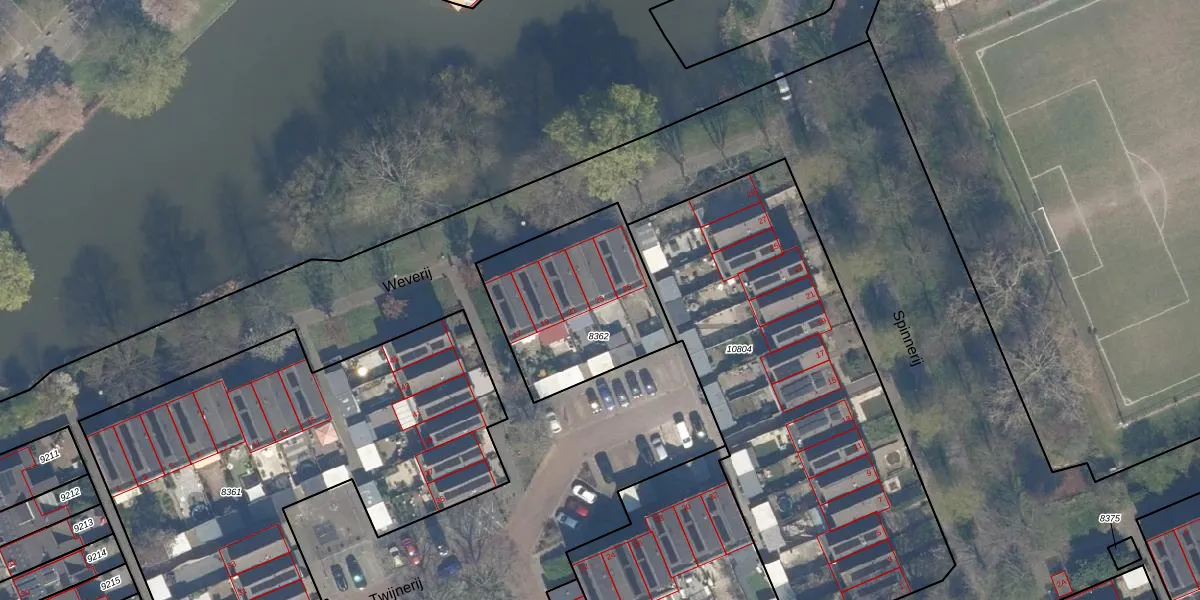 Het perceel waarop Weverij 23 staat heeft een oppervlakte van 642 m². Dit is een groot perceel. De perceeloppervlakte wordt geregistreerd door het Kadaster. Gedetailleerde informatie over de maten van dit perceel kunt u vinden in het rapport Kadastrale kaart met maatvoering van Weverij 23.