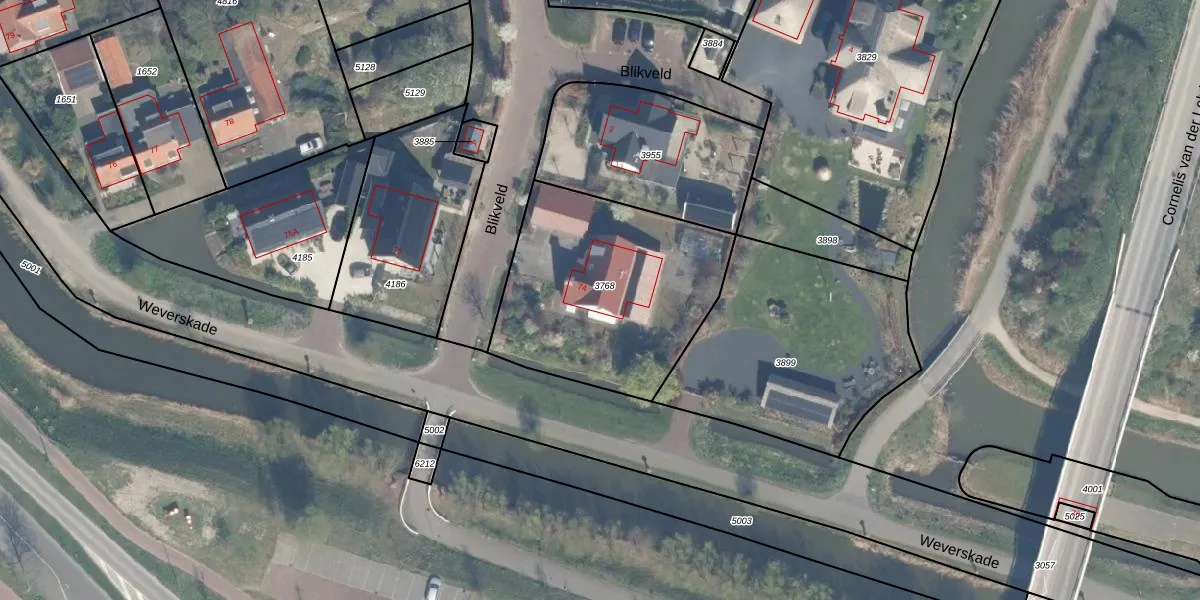 Het perceel waarop Weverskade 74 staat heeft een oppervlakte van 1000 m². Dit is een zeer groot perceel. De perceeloppervlakte wordt geregistreerd door het Kadaster. Gedetailleerde informatie over de maten van dit perceel kunt u vinden in het rapport Kadastrale kaart met maatvoering van Weverskade 74.