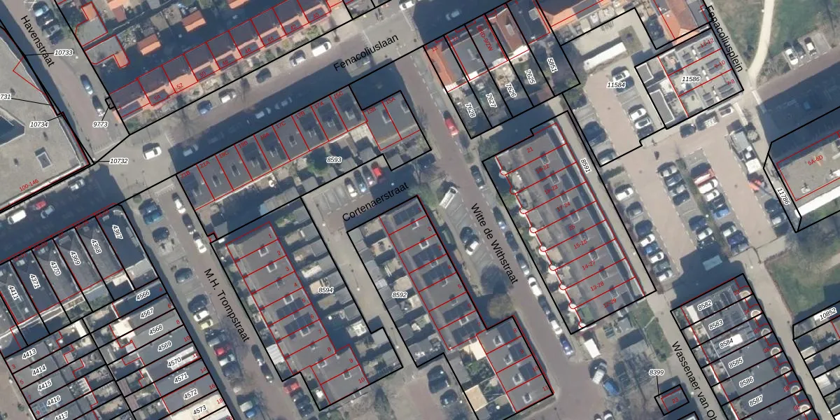 Het perceel waarop Witte de Withstraat 1 staat heeft een oppervlakte van 1082 m². Dit is een zeer groot perceel. De perceeloppervlakte wordt geregistreerd door het Kadaster. Gedetailleerde informatie over de maten van dit perceel kunt u vinden in het rapport Kadastrale kaart met maatvoering van Witte de Withstraat 1.
