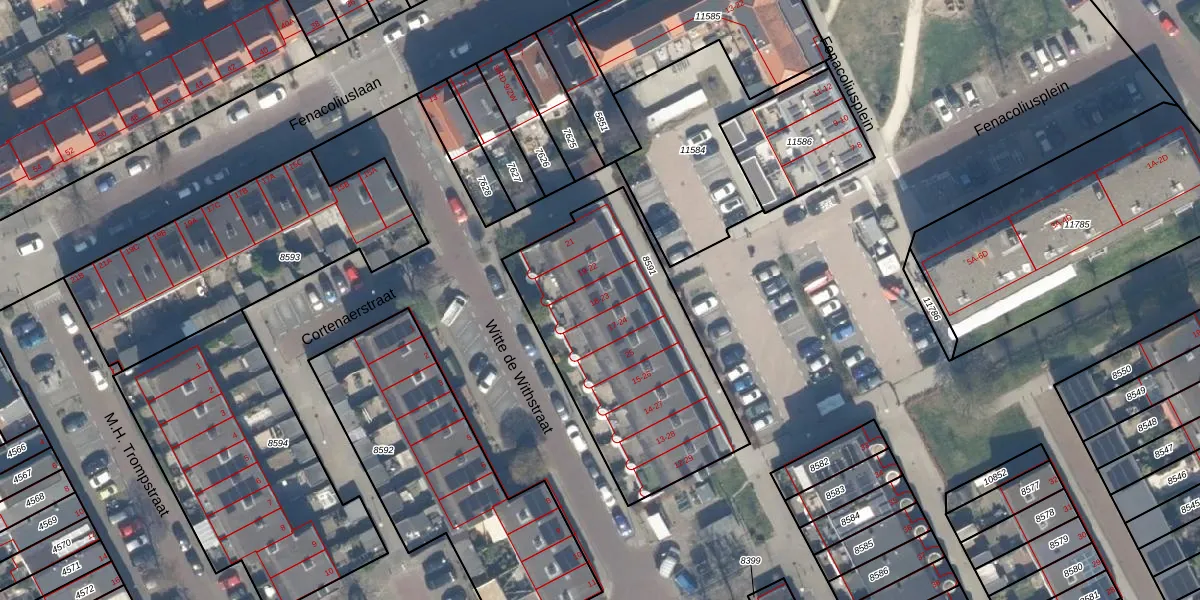 Het perceel waarop Witte de Withstraat 23 staat heeft een oppervlakte van 1100 m². Dit is een zeer groot perceel. De perceeloppervlakte wordt geregistreerd door het Kadaster. Gedetailleerde informatie over de maten van dit perceel kunt u vinden in het rapport Kadastrale kaart met maatvoering van Witte de Withstraat 23.
