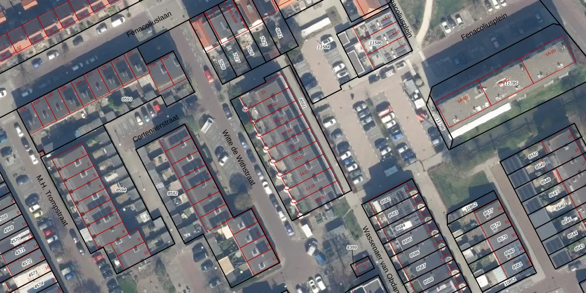 Het perceel waarop Witte de Withstraat 25 staat heeft een oppervlakte van 1100 m². Dit is een zeer groot perceel. De perceeloppervlakte wordt geregistreerd door het Kadaster. Gedetailleerde informatie over de maten van dit perceel kunt u vinden in het rapport Kadastrale kaart met maatvoering van Witte de Withstraat 25.