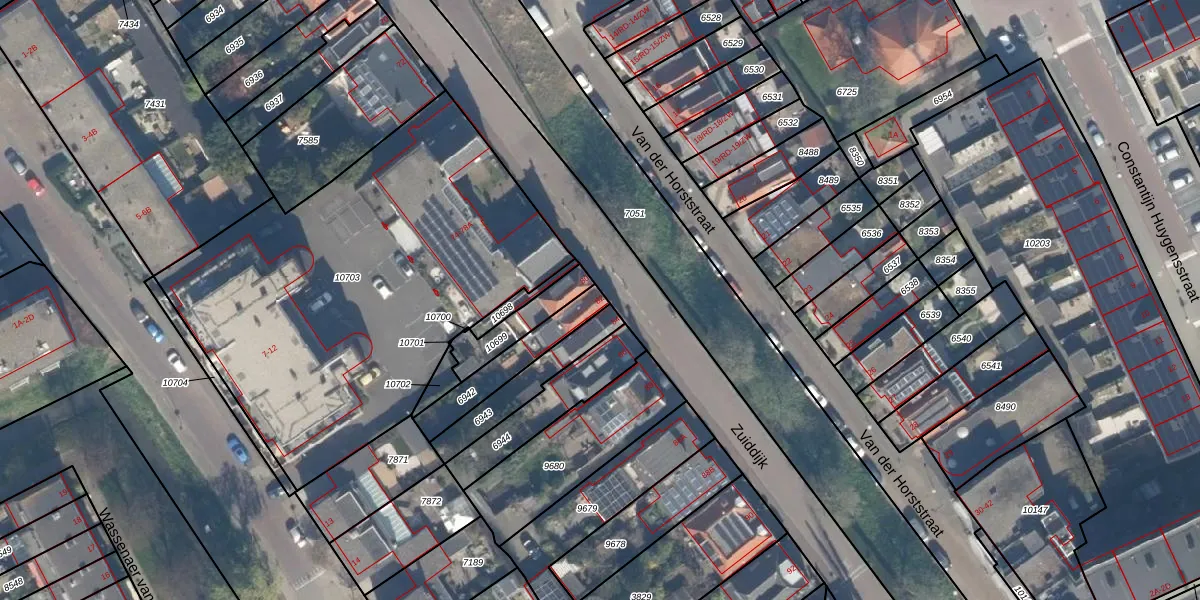 Gebruik de zoekbalk of klik op een perceel voor informatie over de adressen binnen dit perceel.