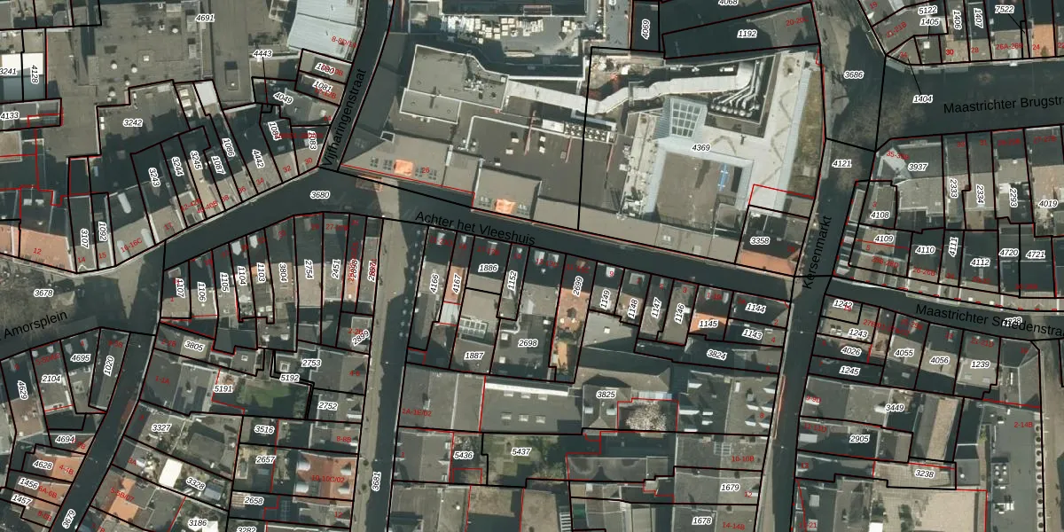 Achter het Vleeshuis 13-B is gelegen op kadastraal perceel MTT00B2698. Deze kadastrale aanduiding is uniek en wordt gebruikt door het Kadaster om eigendomsrechten en andere zakelijke rechten vast te leggen. Het perceel maakt onderdeel uit van de kadastrale gemeente Maastricht.