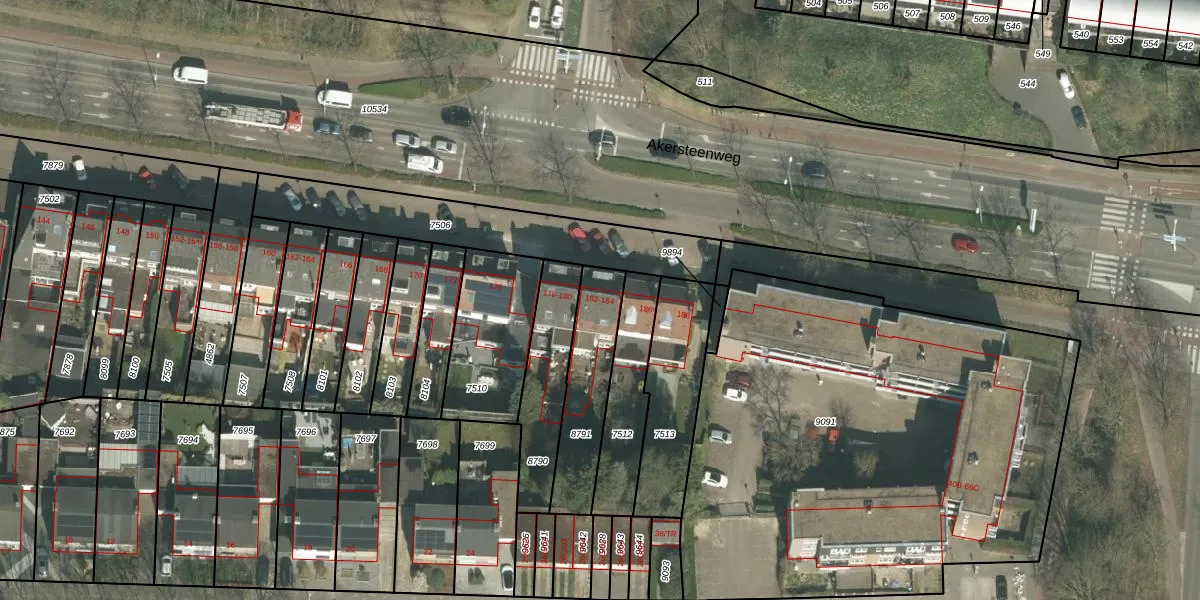 Akersteenweg 184 is gelegen op kadastraal perceel HEE03A8791. Deze kadastrale aanduiding is uniek en wordt gebruikt door het Kadaster om eigendomsrechten en andere zakelijke rechten vast te leggen. Het perceel maakt onderdeel uit van de kadastrale gemeente Heer.