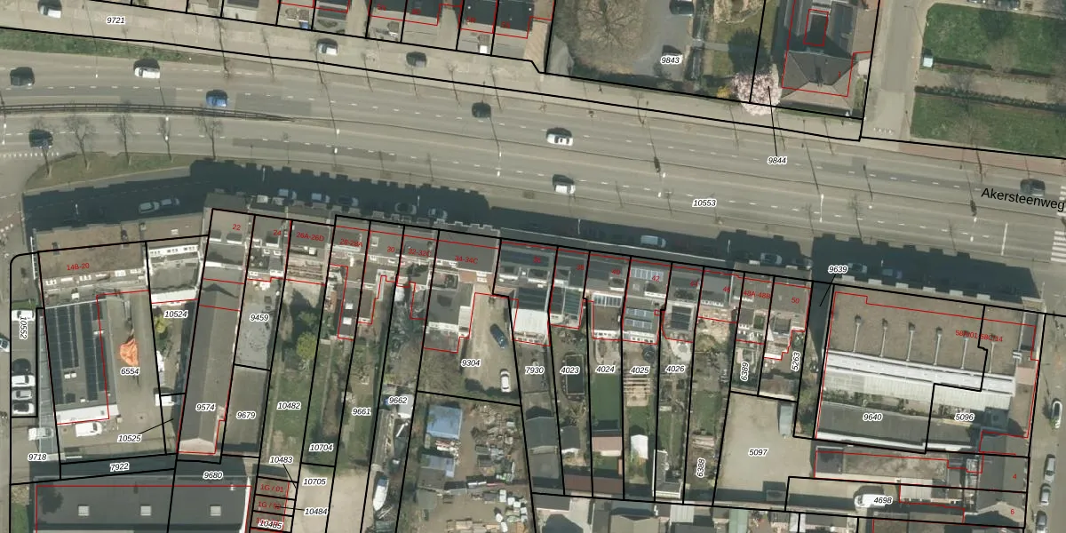 Het perceel waarop Akersteenweg 36 staat heeft een oppervlakte van 362 m². Dit is een groot perceel. De perceeloppervlakte wordt geregistreerd door het Kadaster. Gedetailleerde informatie over de maten van dit perceel kunt u vinden in het rapport Kadastrale kaart met maatvoering van Akersteenweg 36.