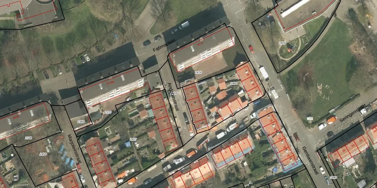 Het perceel waarop het adres ligt is MTT00-C-2460. De afkorting 'MTT00' staat voor kadastrale gemeente Maastricht. Het perceel is kleiner dan gemiddeld in Maastricht. Het perceel is 951 m² groot, terwijl het gemiddelde ligt op 1137,21 m². Het grootste perceel in de kadastrale gemeente is 53,8 ha. Het kleinste perceel heeft een oppervlakte van 0 m². Op het perceel liggen in totaal 9 adressen. In de Basisregistratie Kadaster (BRK) werden de grenzen van het perceel geregistreerd op 27-11-2008.